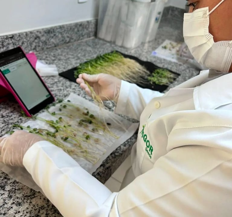 Realizamos testes de germinação para assegurar que suas sementes tenham o vigor necessário para crescer.